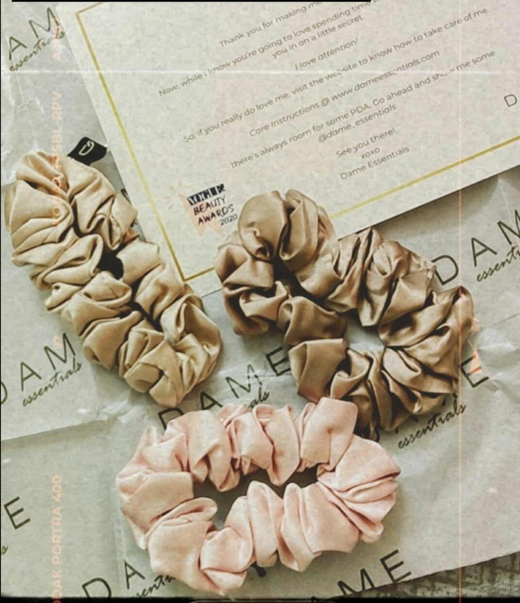 Made out of 100% Pure Mulberry Silk, Dame Essentials Silk Scrunchies are a treat for your delicate hair! They come in a set of three so that you always have a spare.